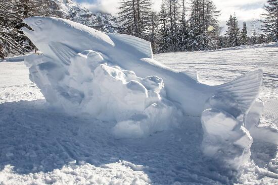 Students and former students of the Cademia Art School in Ortisei transform snow into art, inspired by the theme of the competition: the Ladins, the people of the Dolomites.