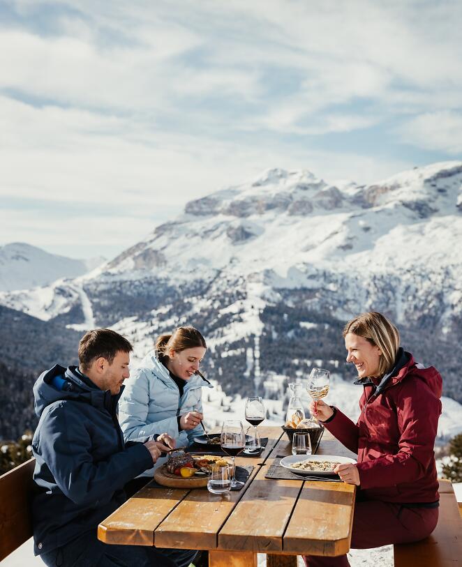Nestled in the heart of the Dolomites, Alta Badia’s mountain huts mark the culmination of every tour or excursion, in winter and summer alike. Spread throughout the entire territory, they represent very popular places to stop off for skiers, hikers and gourmets, ranging from a casual self-service to a gourmet alpine hut and up to a traditional mountain hut. Of course, there is a very rich culinary offer, inviting you to enjoy the typical Ladin, Italian and South Tyrolean cuisine, lovely desserts, barbecues, fish-based dishes, pasta, pizza and tasty snacks.