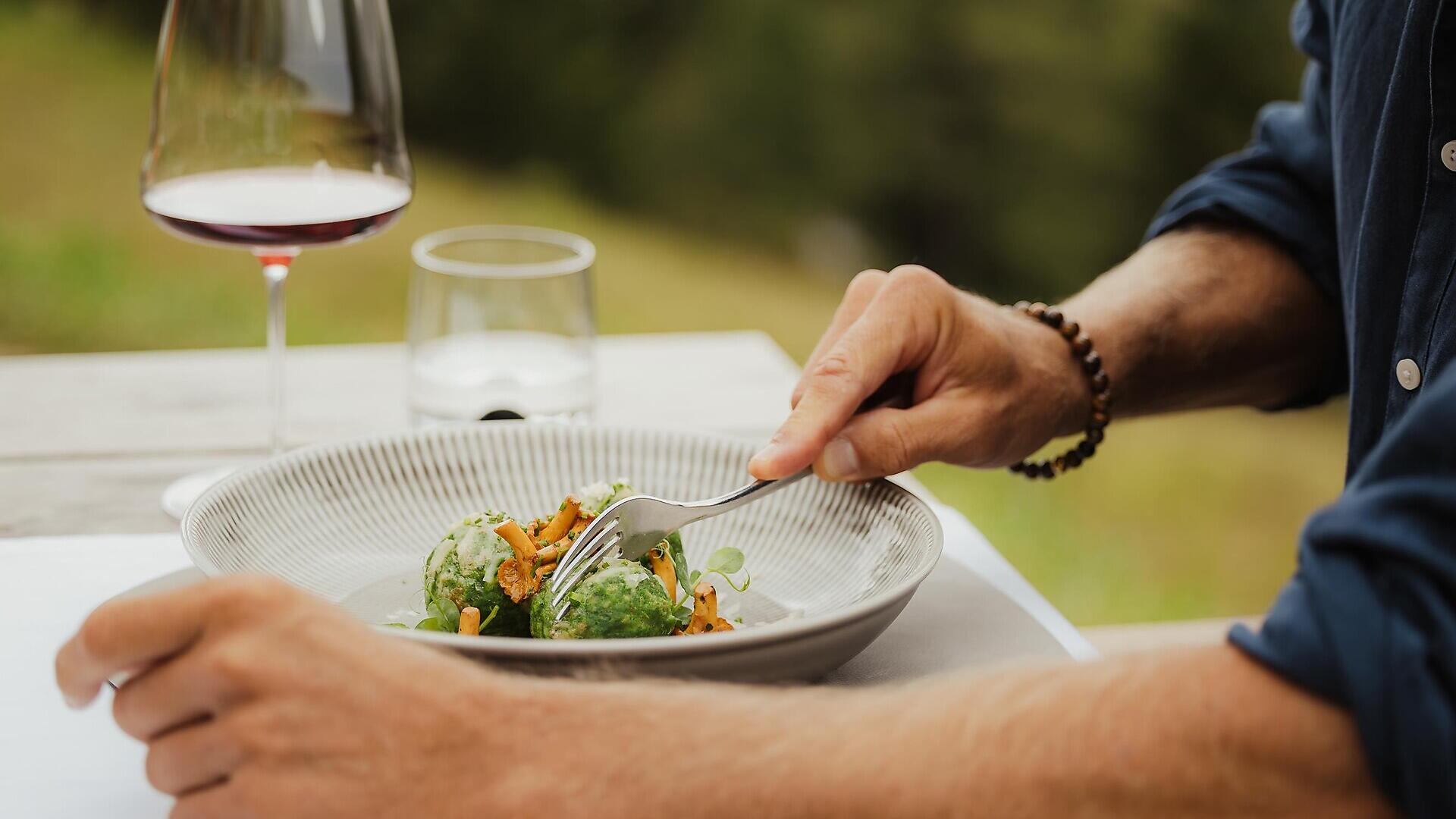 • Canederli di polenta e formaggio di malga con finferli locali