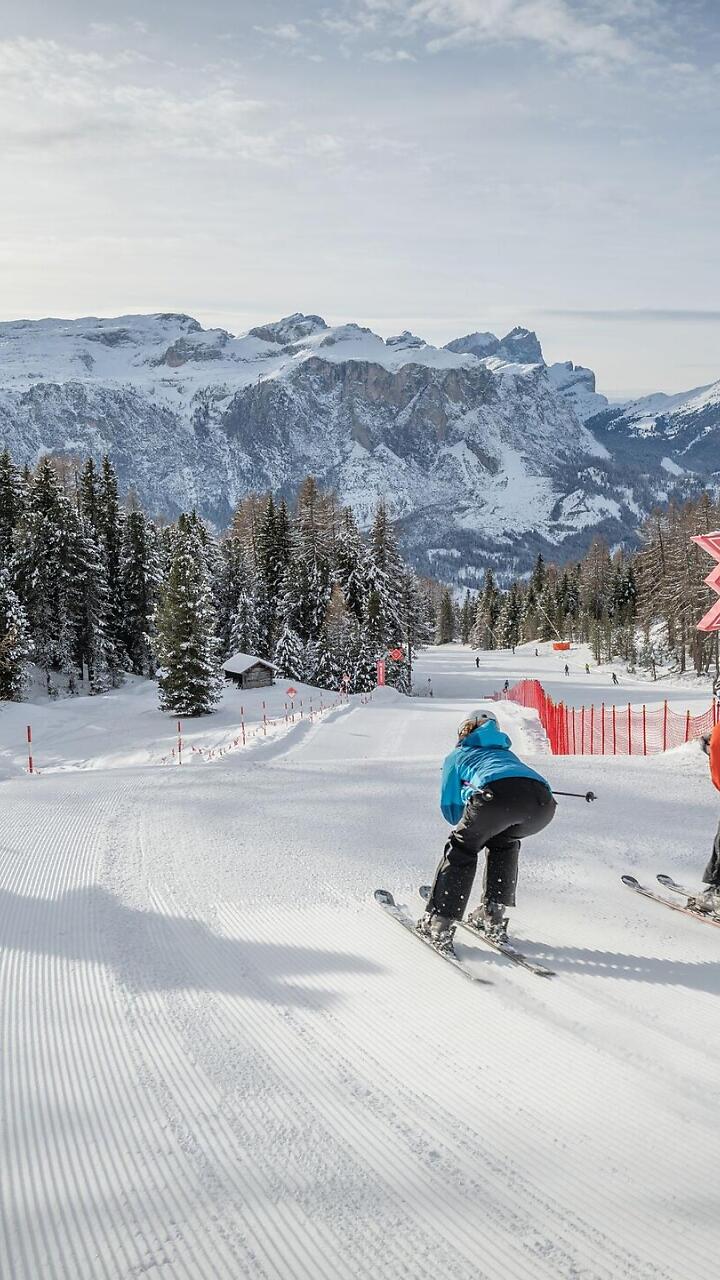 On the Free Ride Cross of La Crusc you will experience a shift from the slope to the backcountry, while having a view on the unique panorama of the mountain massif Sas dla Crusc (Kreuzkofel – Santa Croce).